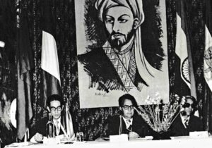 سمینار دقیقی در کلوب مطبوعات ۱۳۵۳.رئیس مجلس ژیلبر لازاردر وسط سمت چپ آصف فکرت سکرتر علمی مجلس